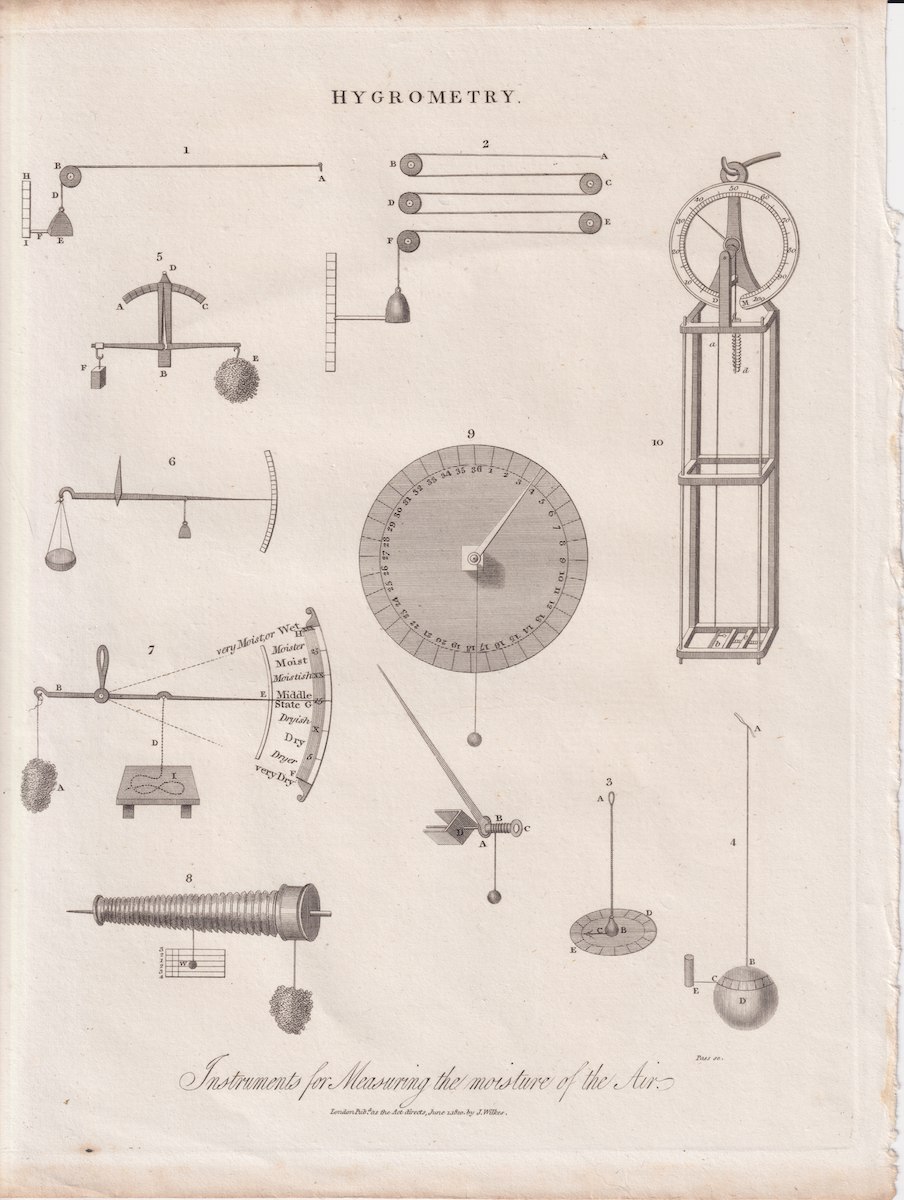 Antique Engraving Print, Hygrometry, 1810, credit Antiche Curiosità©