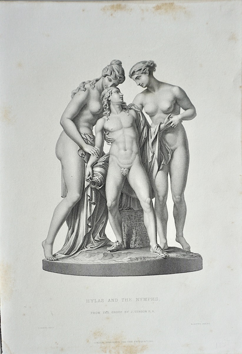 Antique Engraving Print, Hylas and the Nymphs, 1859, from the group by J. Gibson, 32,3 x 22,3 cm.