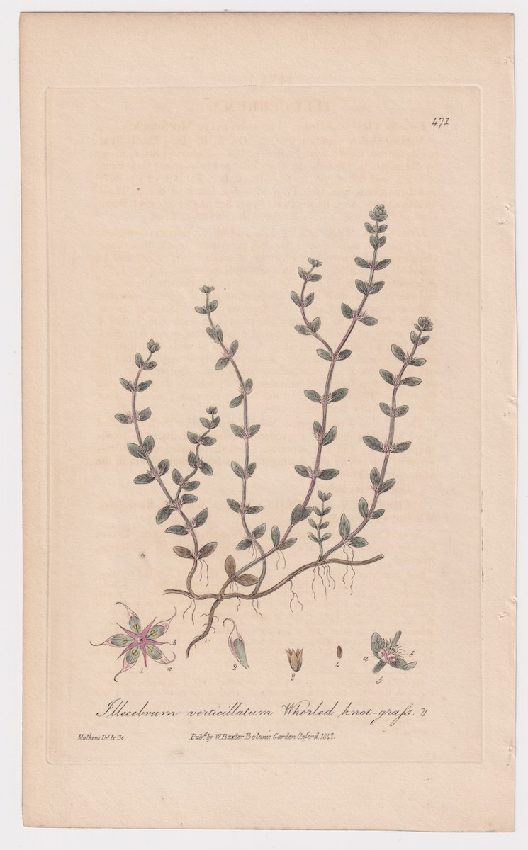 Antique Engraving print, Illecebrum verticillatum, 1842, credit Antiche Curiosità©