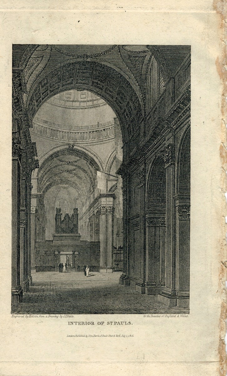 Antique Engraving Print, Interior of St. Pauls, London, 1816, cm. 20,5 x 12,5, published by John Harris, engraved by Hobson.