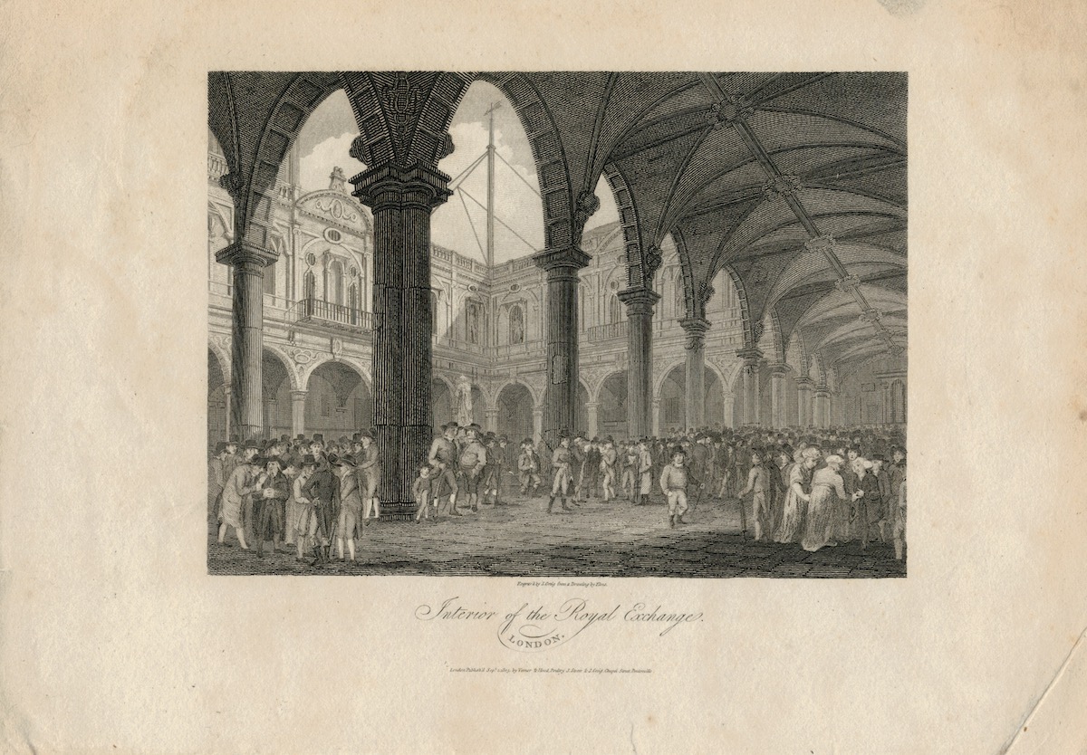 Antique Engraving Print, Interior of the Royal Exchange, 1805, credit Antiche Curiosità©