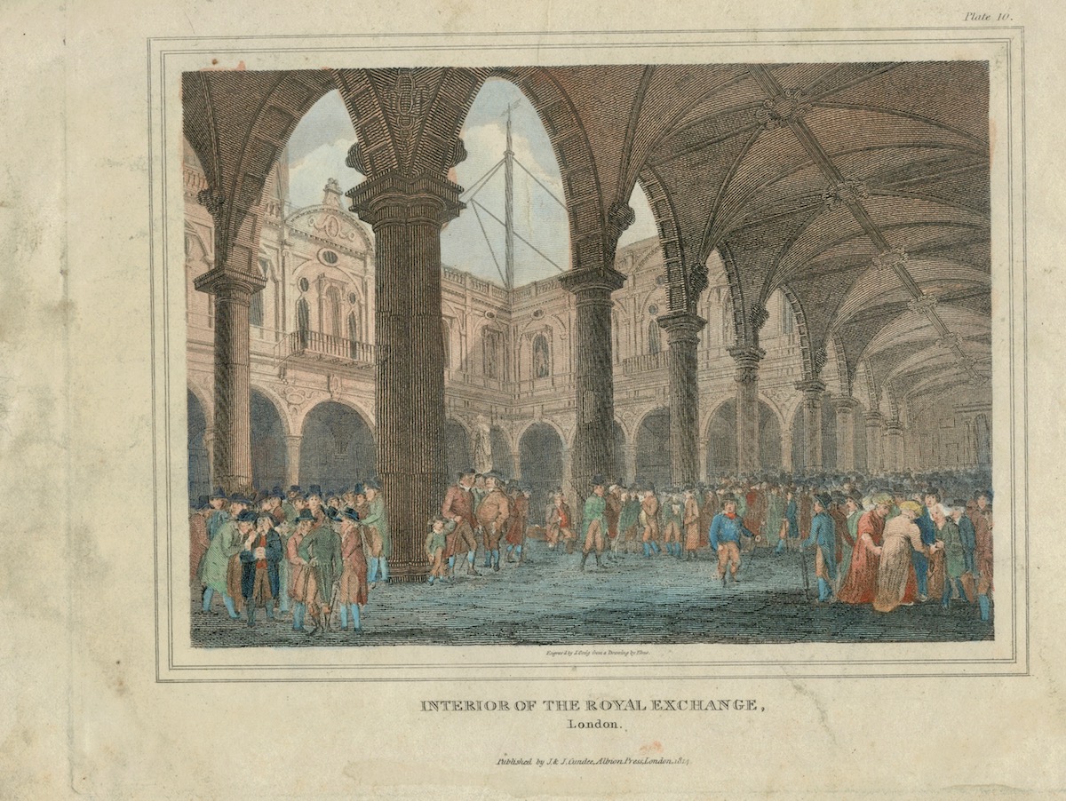Antique Engraving Print, Interior of the Royal Exchange, London, 1814, credit Antiche Curiosità©