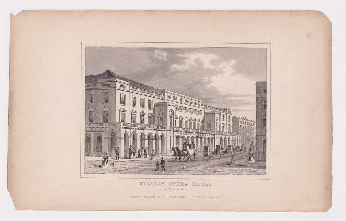 Antique Engraving Print, Italian Opera House, London, 1840 ca. credit Antiche Curiosità©