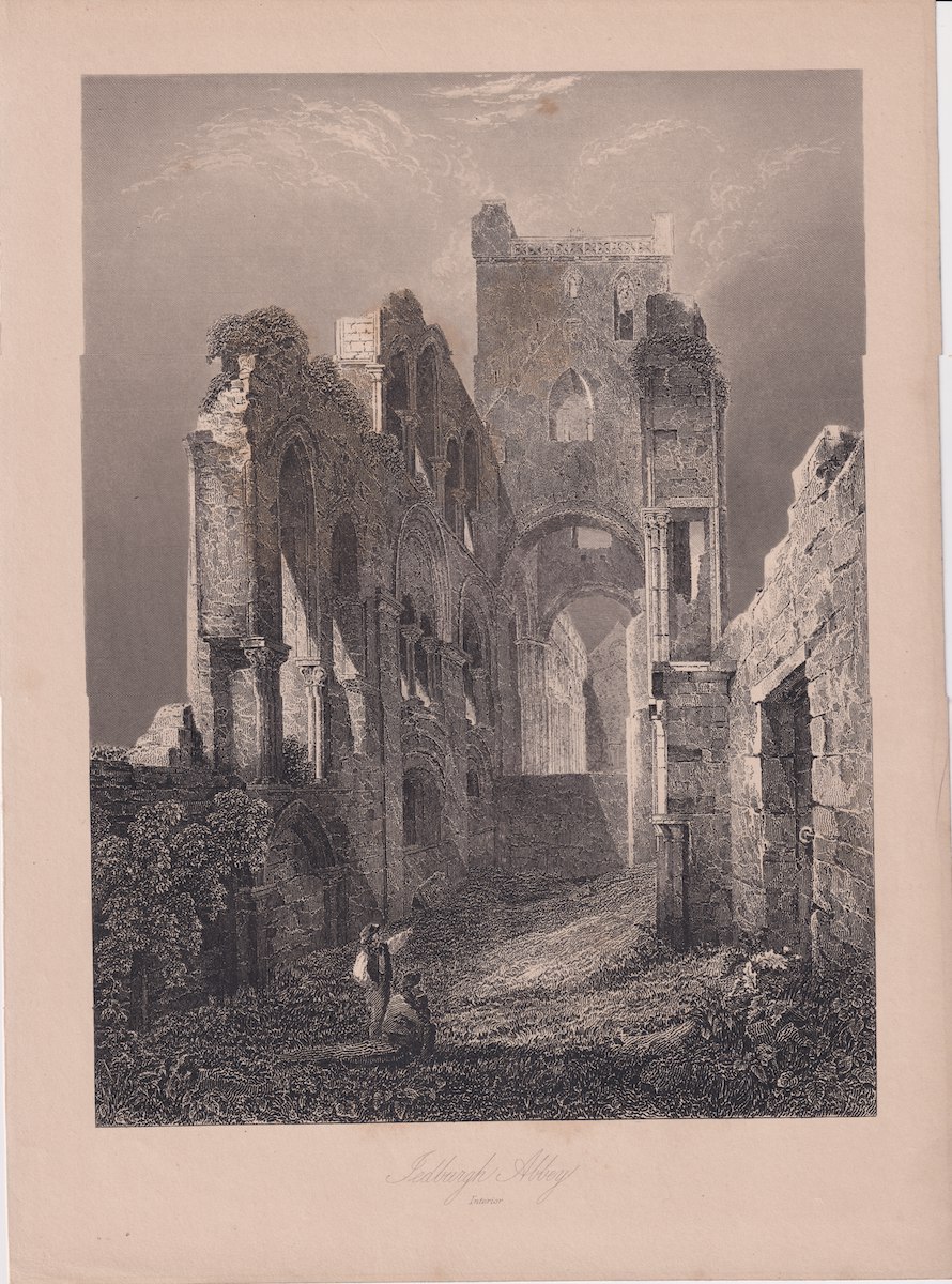 Antique Engraving Print, Jedburgh Abbey, 1860 ca. credit Antiche Curiosità©