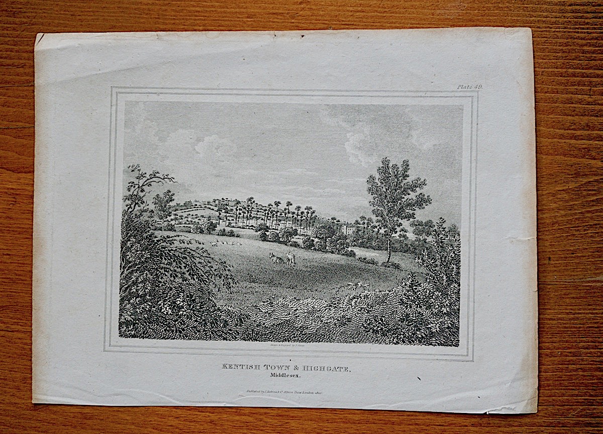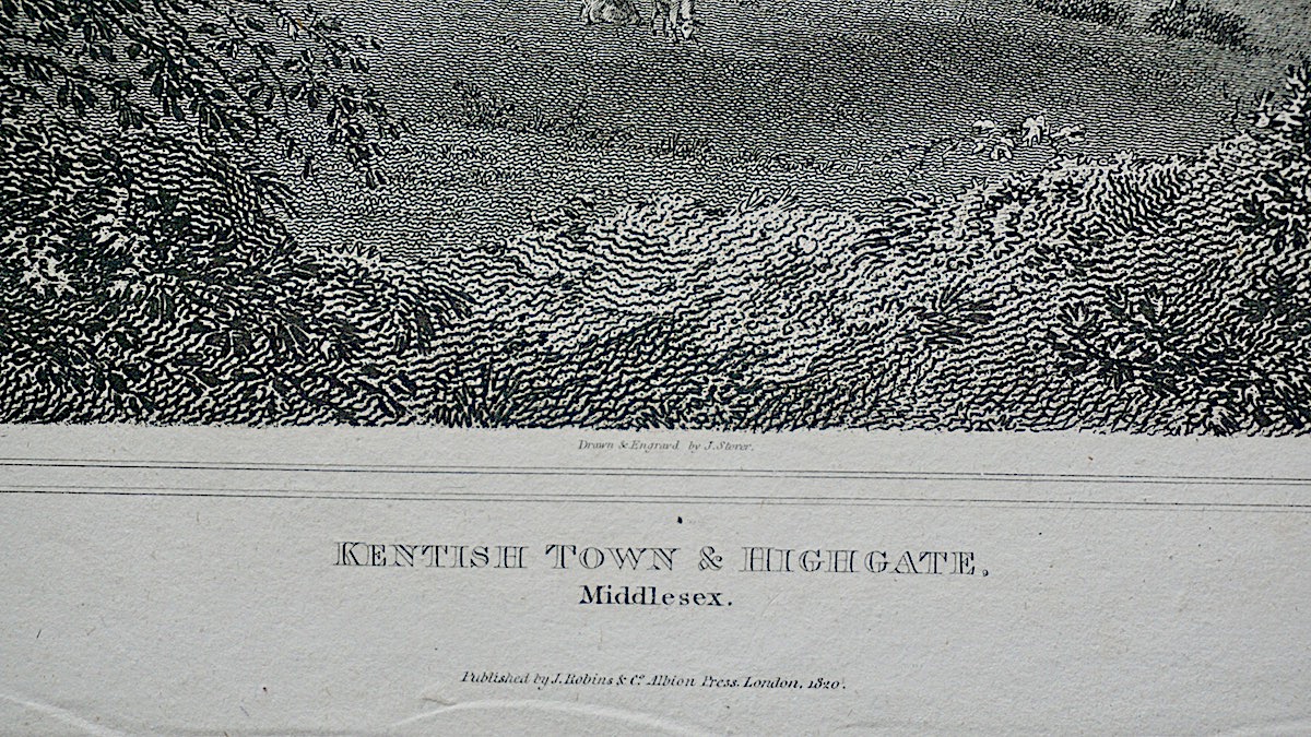 Antique Engraving Print, “Kentish Town & Highgate. Middlesex”, 1819, 10,5 x 8 inch. (27 x 20 cm). Engraved by J. Storer. Published by J. Robins & Co. Albion Press, London.