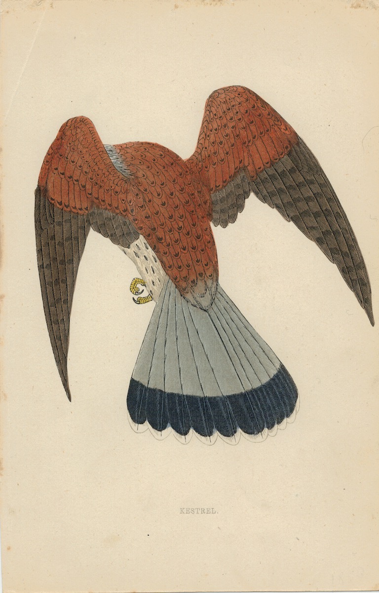 Antique Engraving Print, Kestrel, 1880, credit Antiche Curiosità©