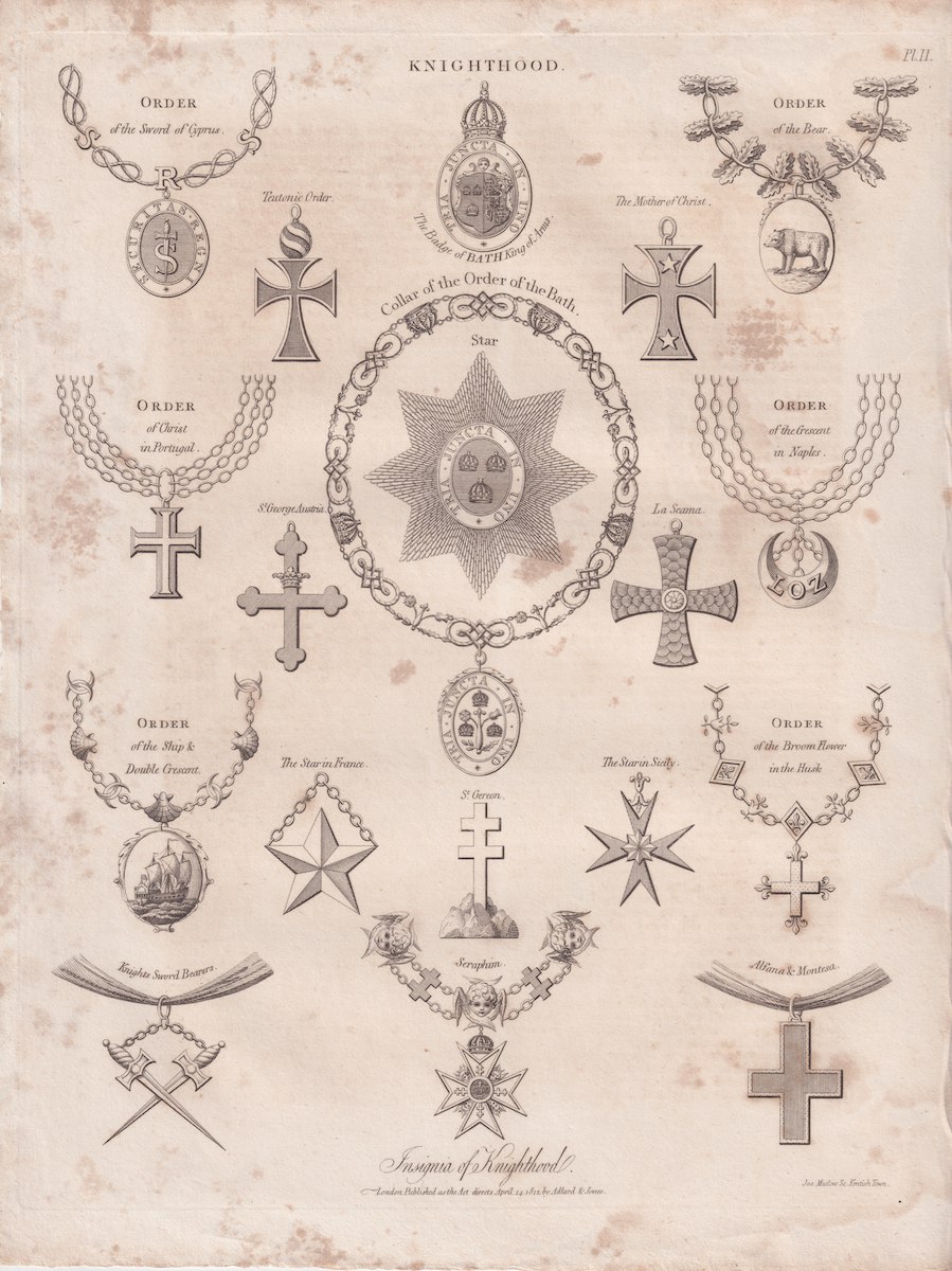 Antique Engraving Print, Knighthood, 1812