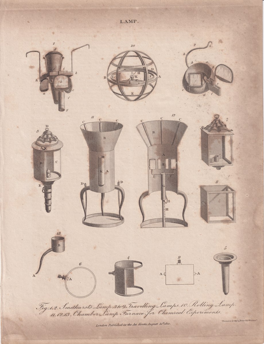 Antique Engraving Print, Lamp, 1812
