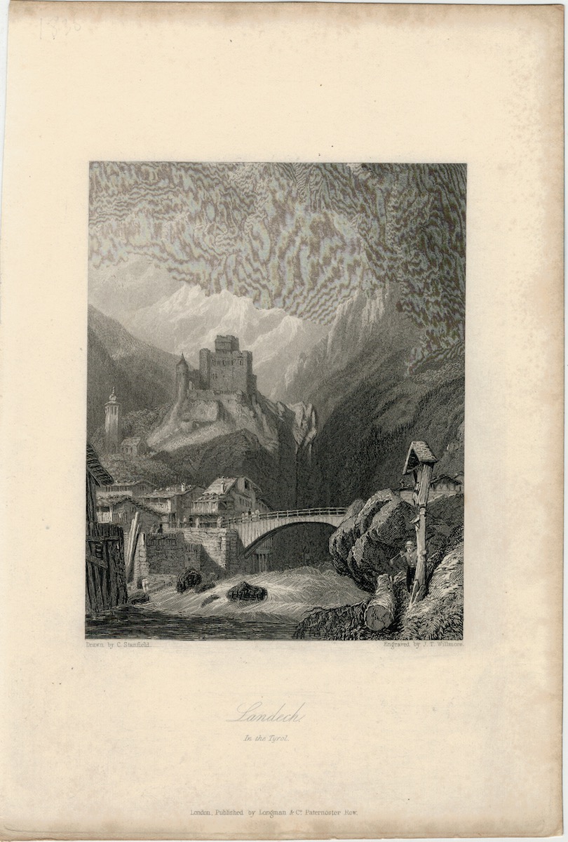 Antique Engraving Print, Landech in the Tyrol, 1836, 23 x 15,5 cm. Engraved by J.T. Willmore.