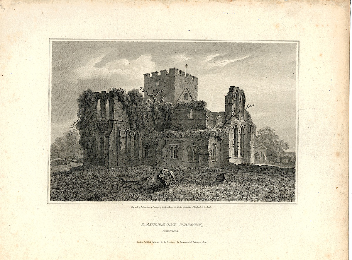 Rare Antique Engraving Print, Lanercost priory, 1812, cm. 29 x 23 ca.