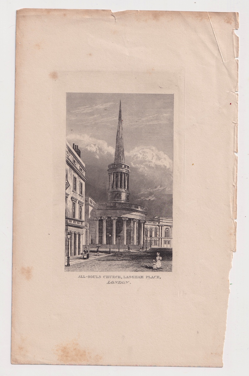 Antique Engraving Print, Langham Place, 1827, credit Antiche Curiosità©