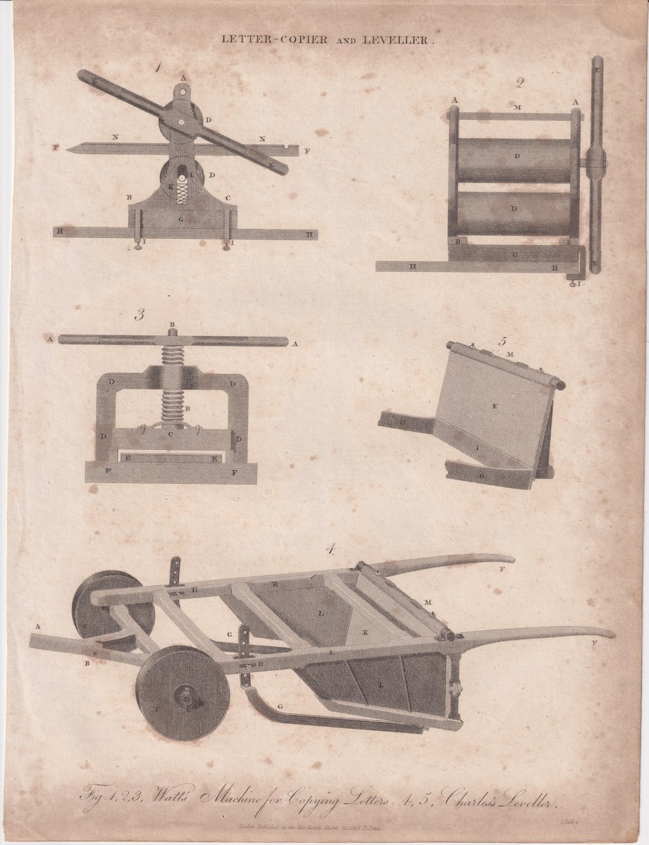 Antique Engraving Print, Letter-copier and Leveller, 1813, 20 x 26.5 cm.
