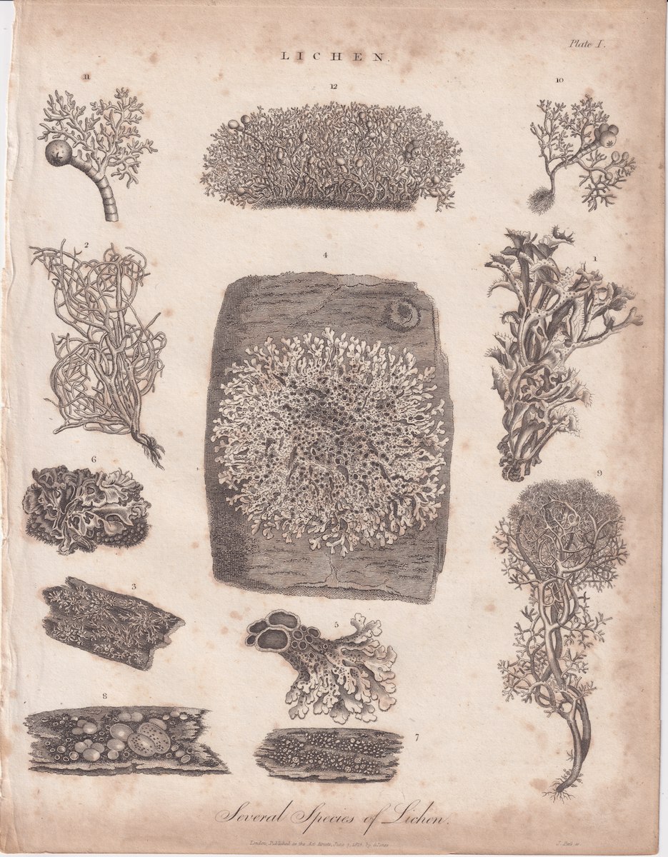 Antique Engraving Print, Lichen, 1813, credit Antiche Curiosità©