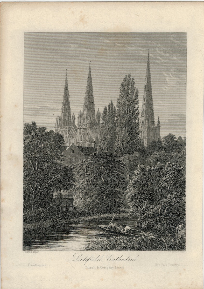 Antique Engraving Print, Lichfield Cathedral, 1860, credit Antiche Curiosità©