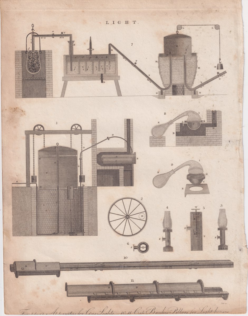 Antique Engraving Print, Light, 1810, 20.3 x 26.6 cm.