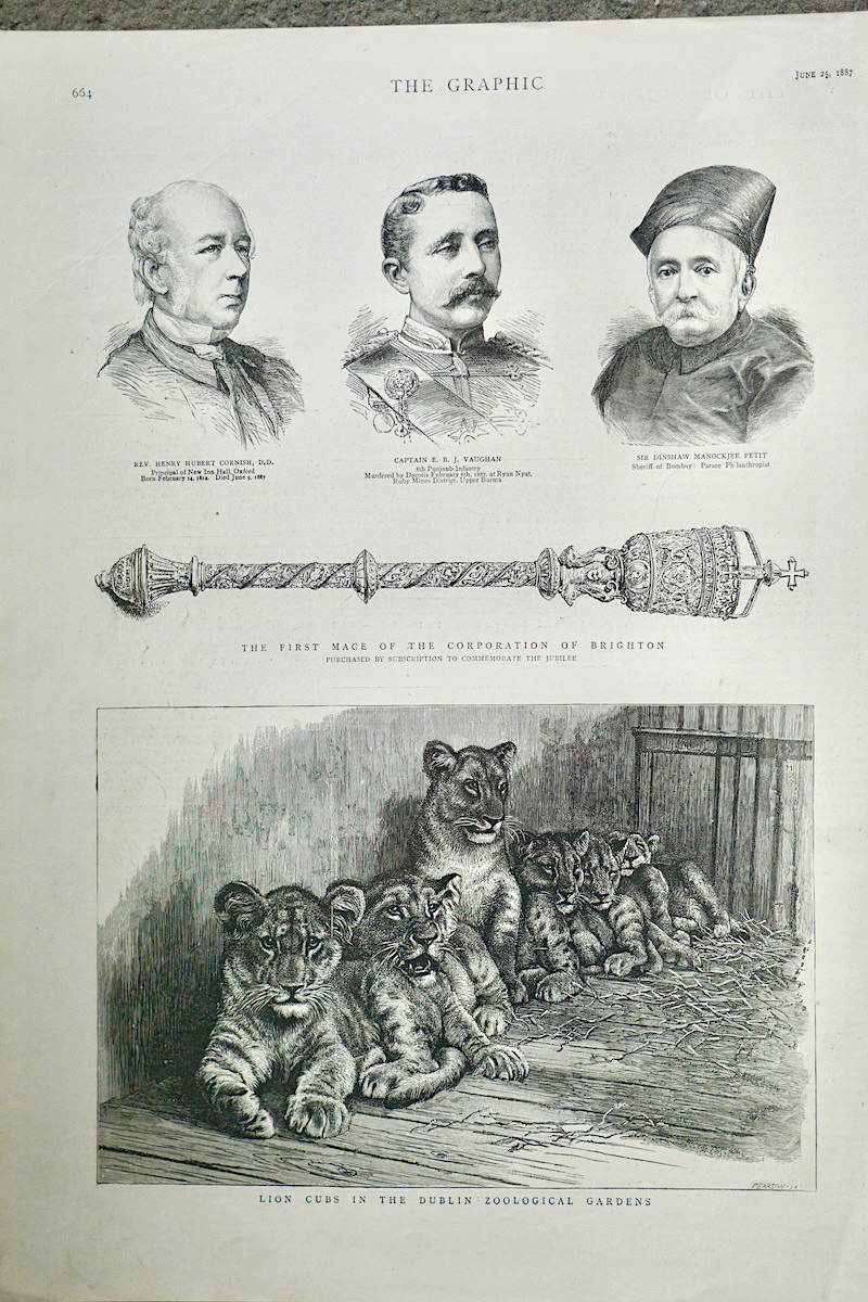 Antique Engraving Print, Lion Cubs in the Dublin Zoological Garden, 1887