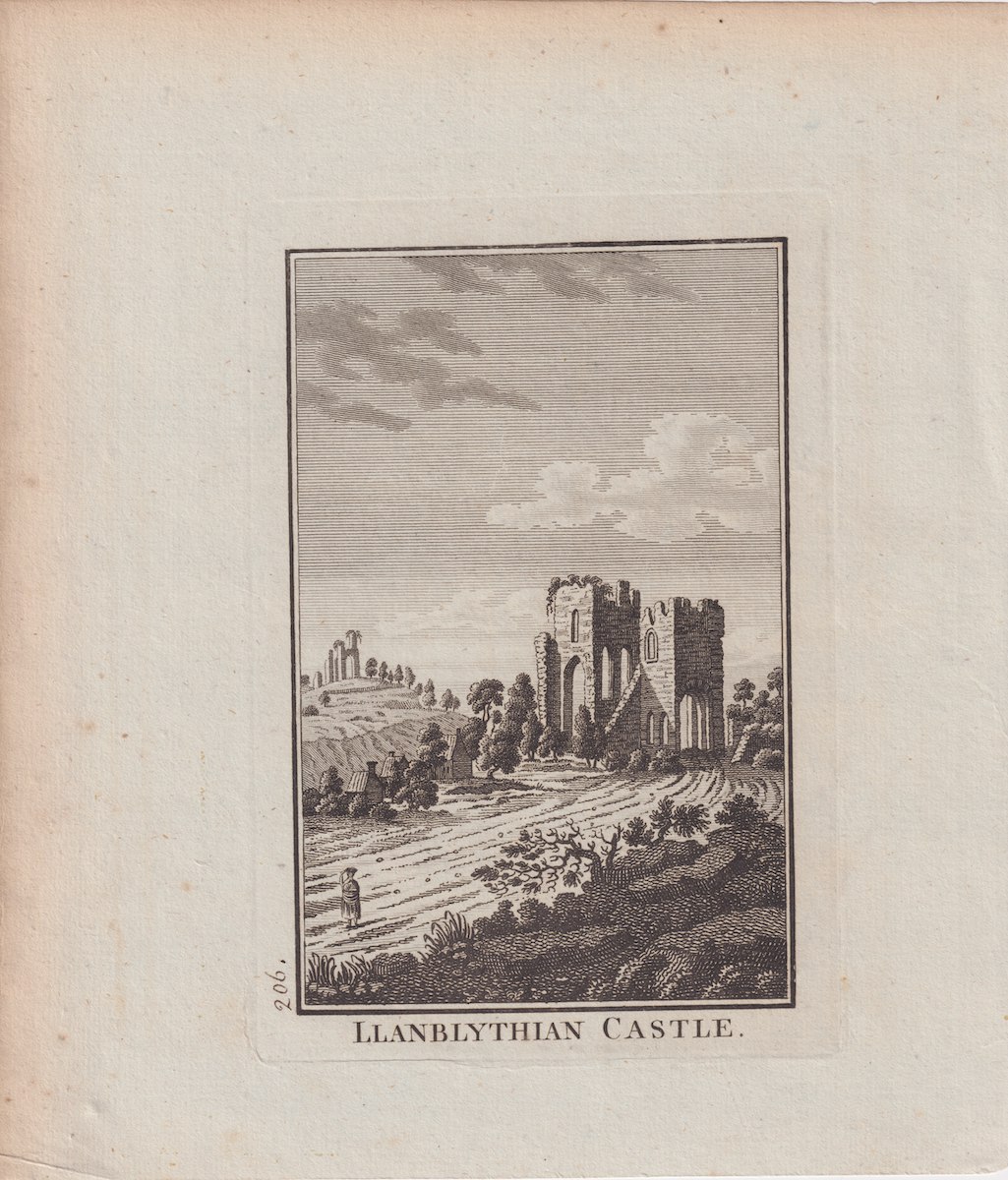 Antique Engraving Print, Llanblythian Castel, 1776, credit Antiche Curiosità©