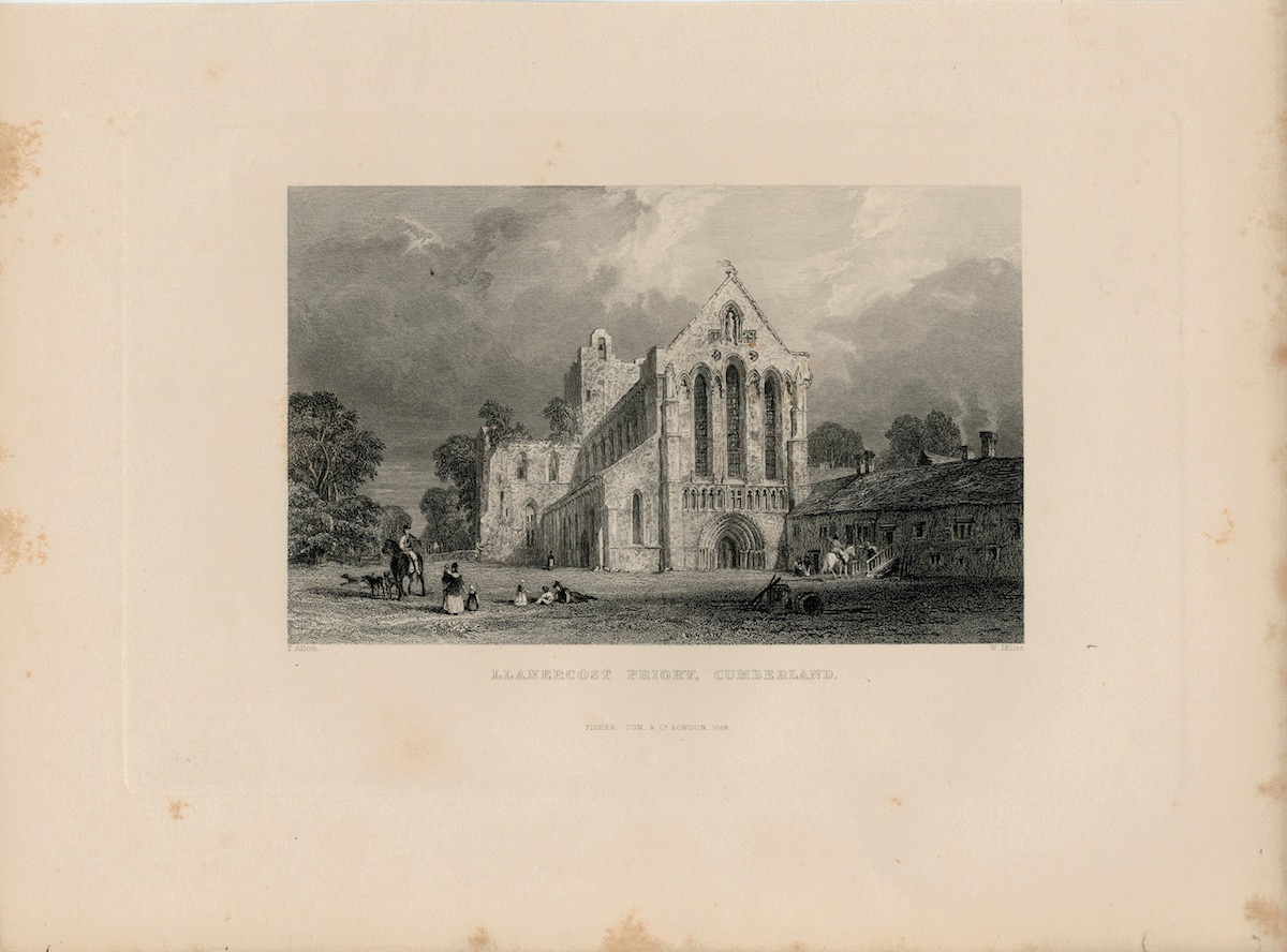 Antique Engraving Print, Llanercost Priory, Cumberland, 1844, credit Antiche Curiosità©