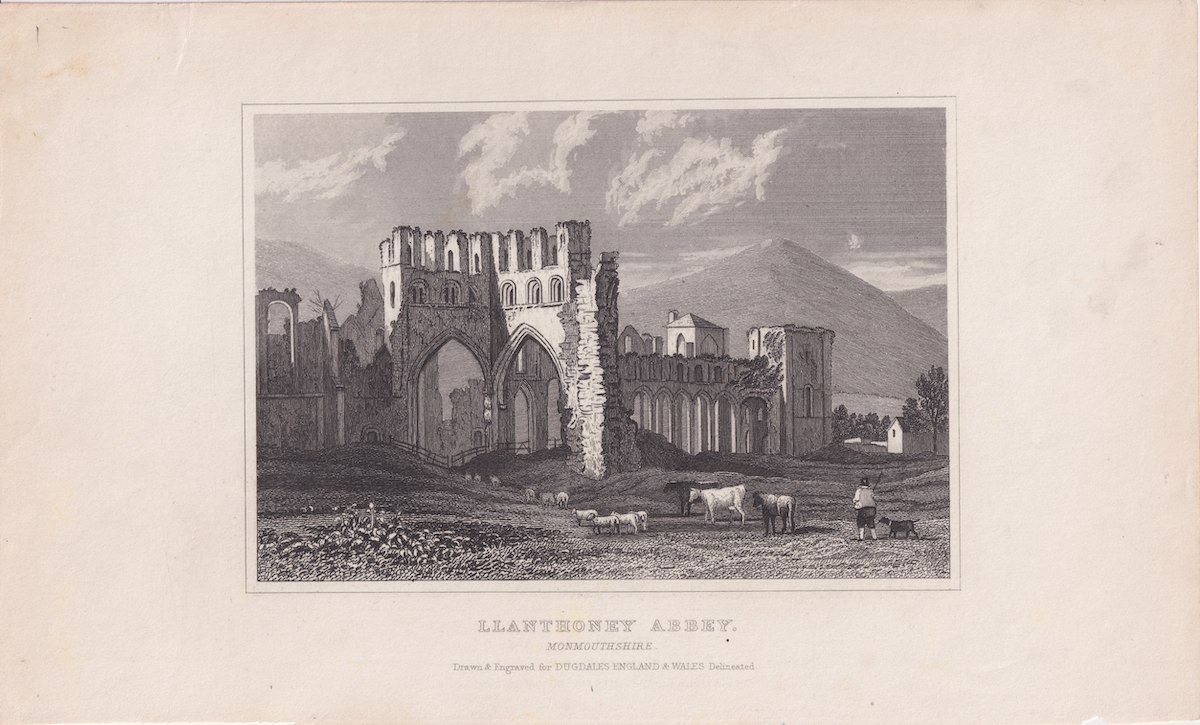 Antique Engraving Print, LLanthoney Abbey, 1830, credit Antiche Curiosità©