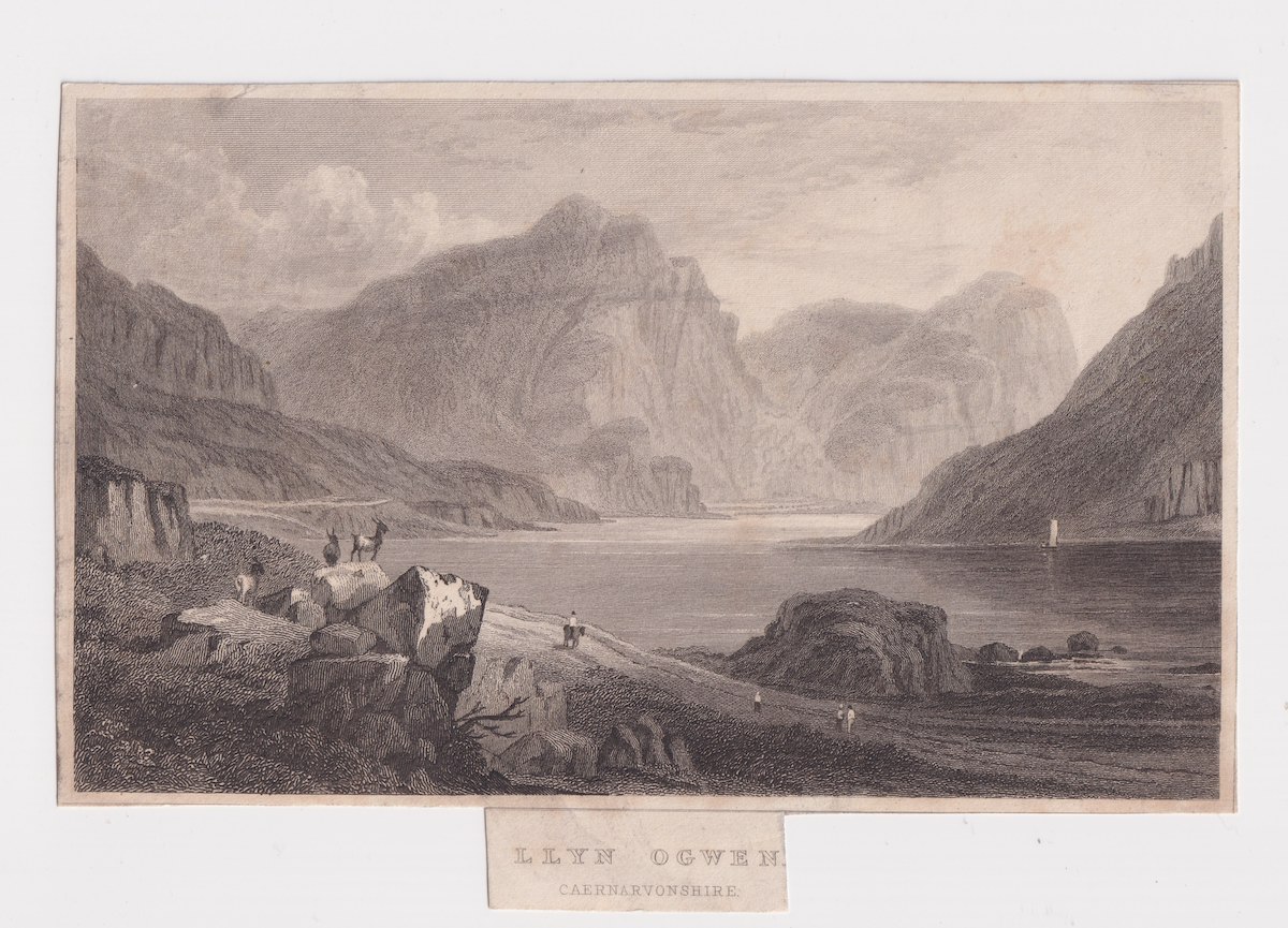 Antique Engraving Print, LLYN Tegid or Bala Lake, Merionetshire, 1830, 14.9 x 10.5 cm.