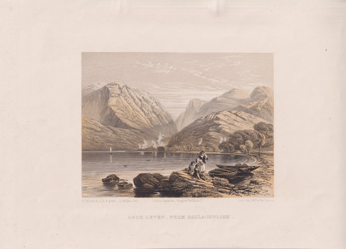 Antique Engraving Print, Loch Leven, From Ballachulish, 1860 ca. credit Antiche Curiosità©