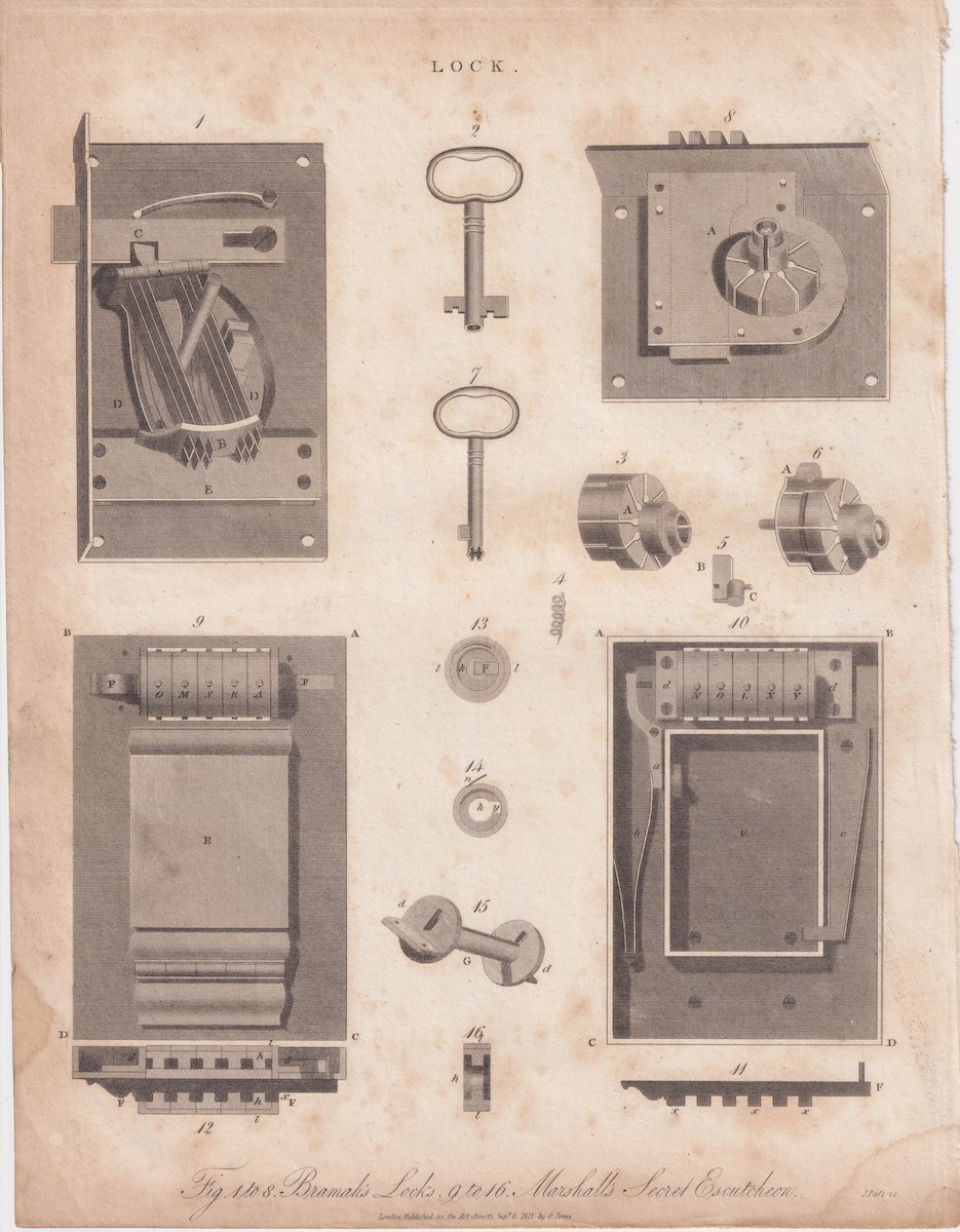 Antique Engraving Print, Lock, 1813, credit Antiche Curiosità©