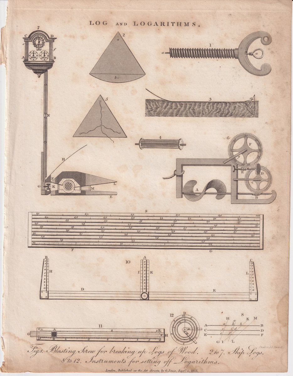 Antique Engraving Print, Log and Logarithms, 1813, credit Antiche Curiosità©