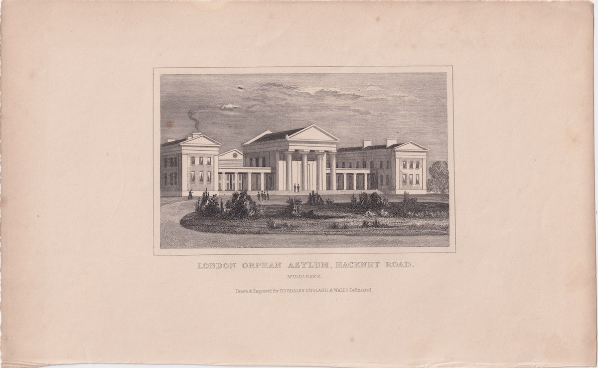 Antique Engraving Print, London Orpham Asylum, Hackney Road, 1845, 22 x 13,5 cm. Dugdales.