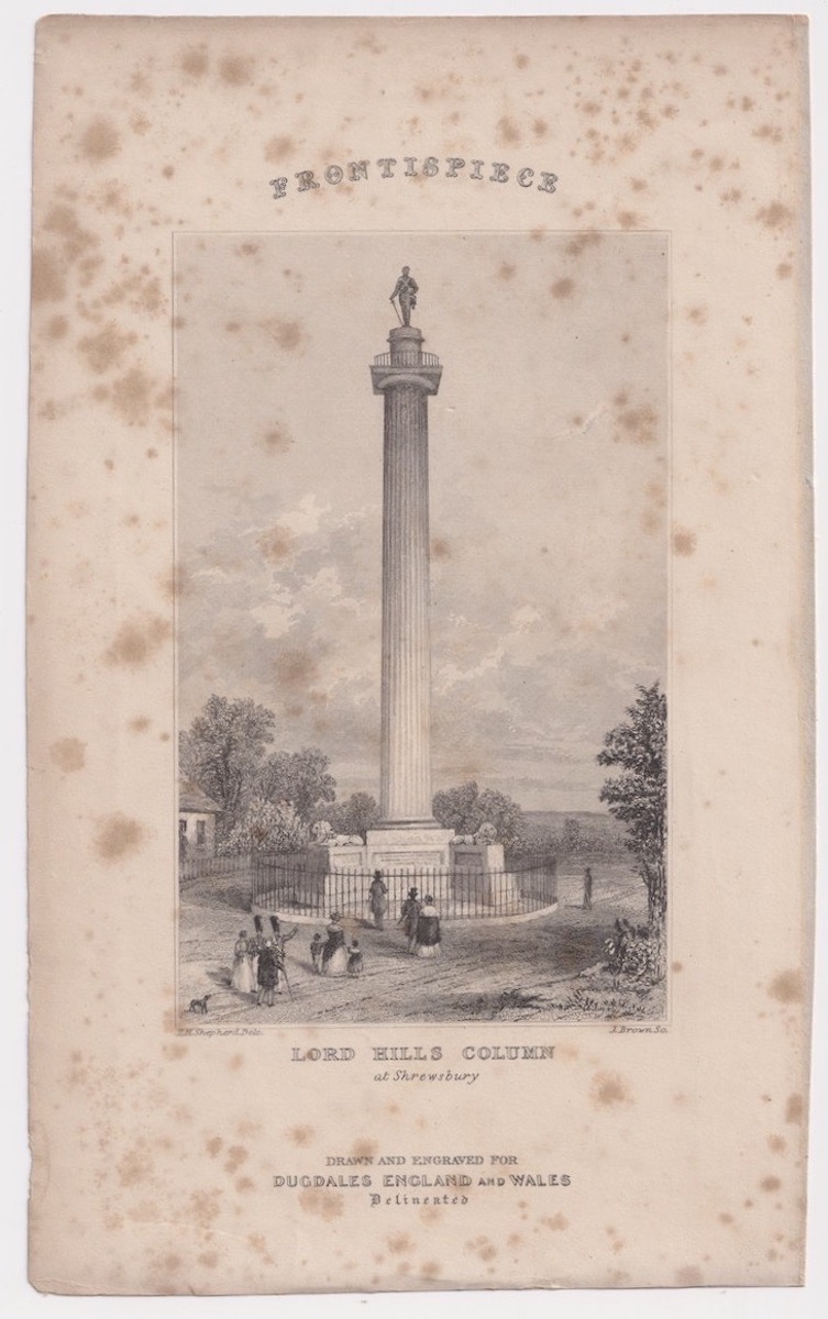 Antique Engraving Print, Lord Hills Column, 1845, 21,5 x13,5 cm. Dugdales.