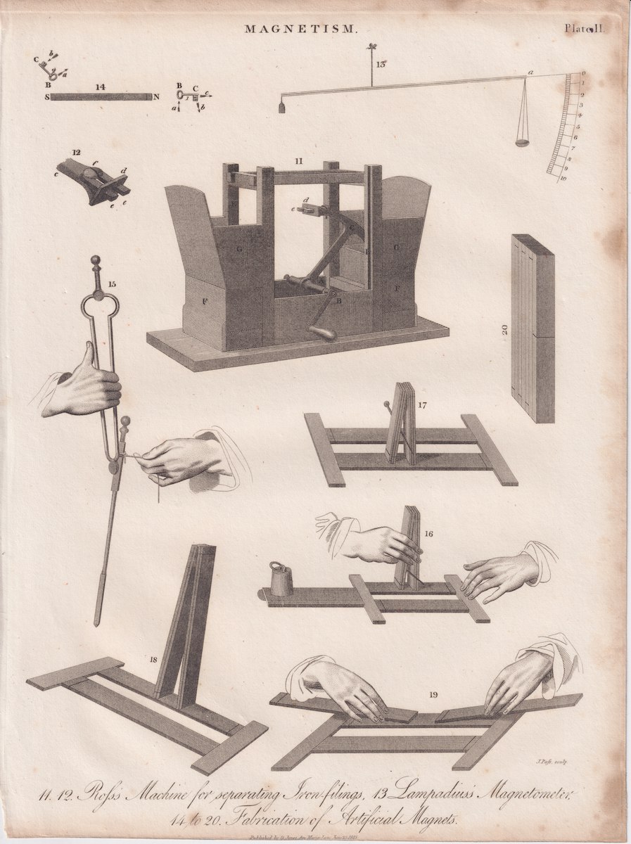 Antique Engraving Print, Magnetism, 1816, credit Antiche Curiosità©