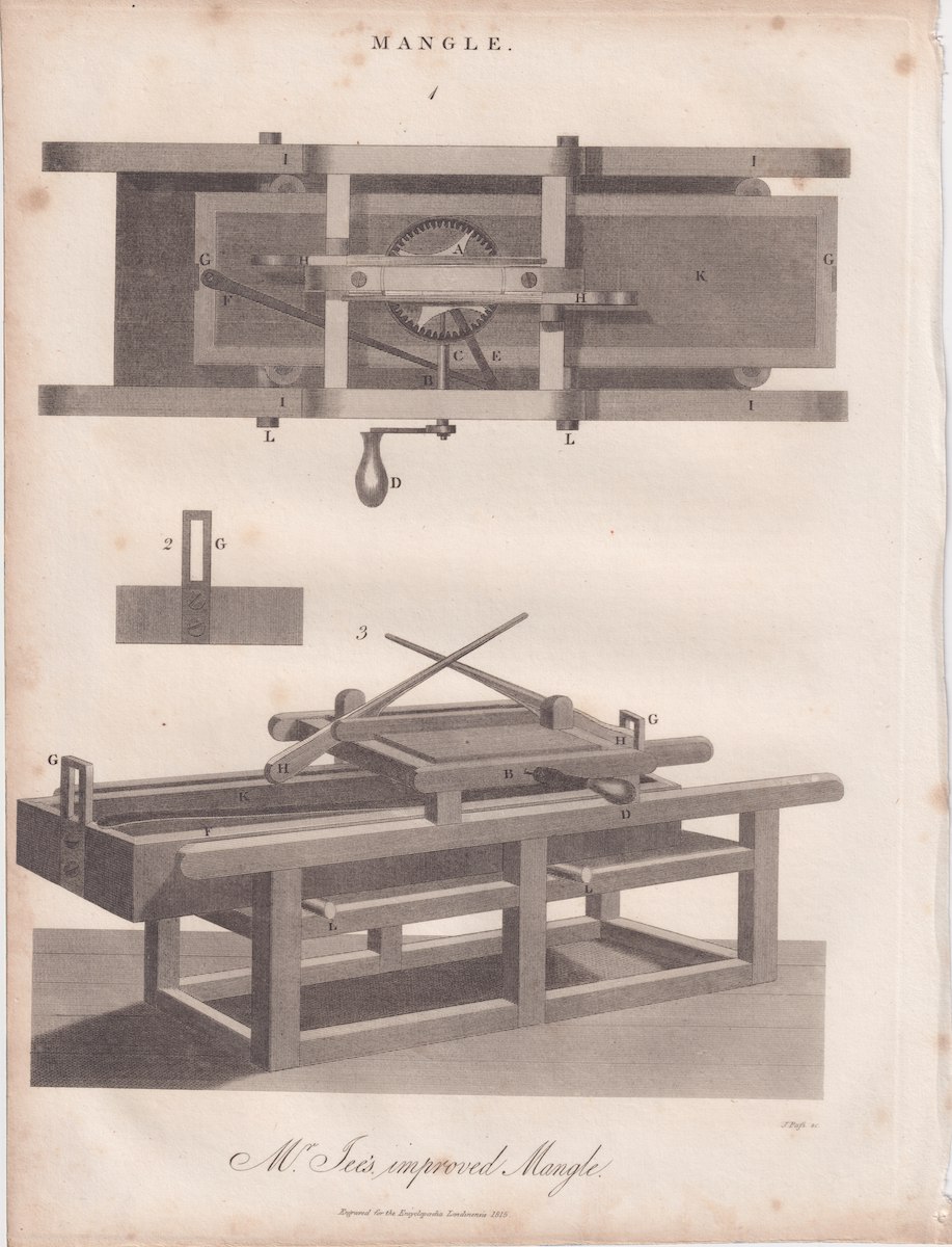 Antique Engraving Print, Mangle, 1815