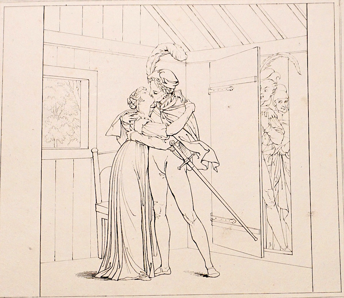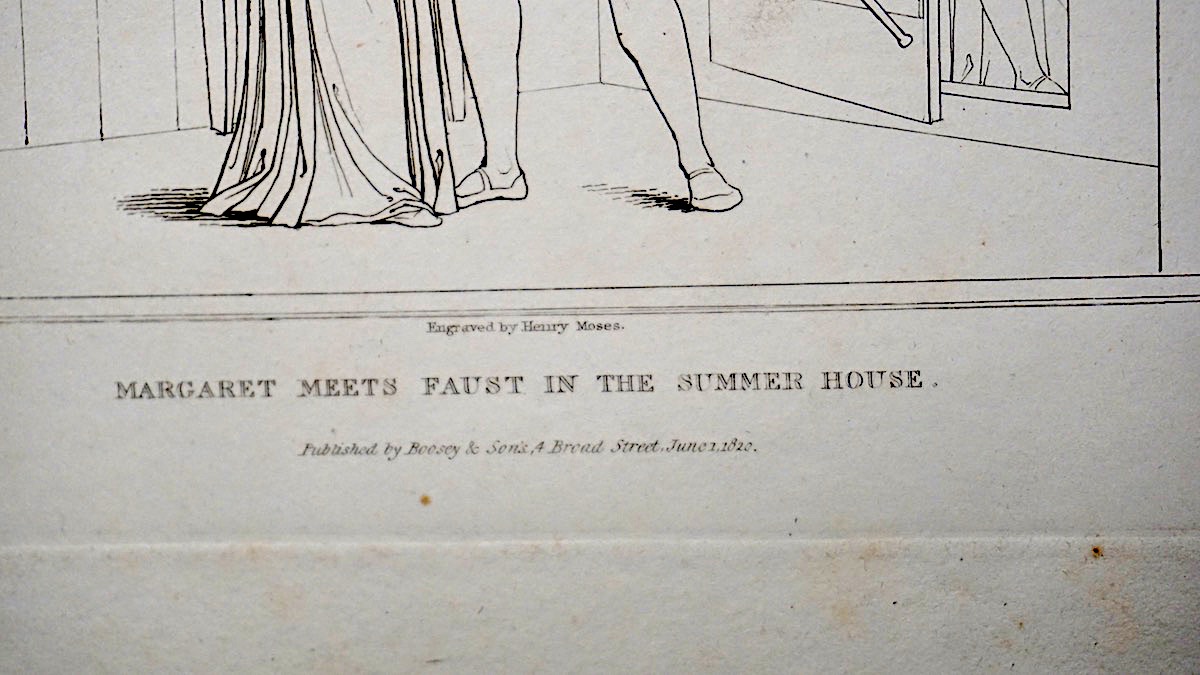 Antique Engraving print, Margaret meets Faust in the Summer House, 1820, credit Antiche Curiosità©