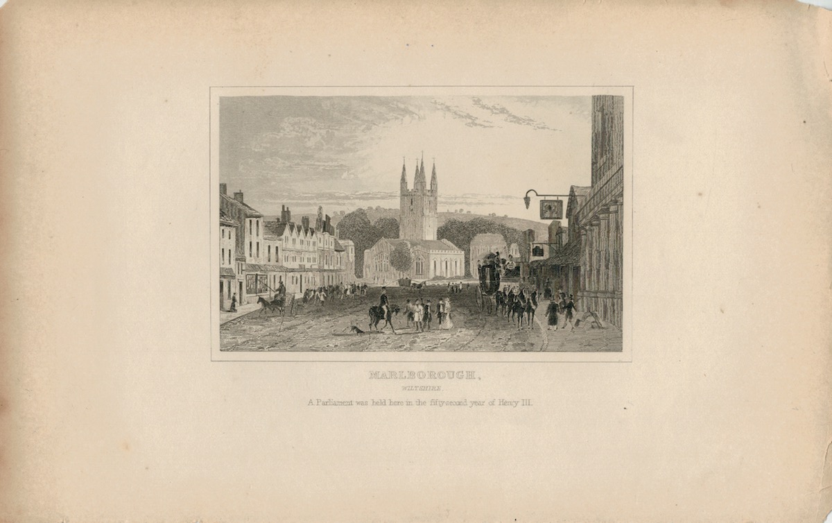 Antique Engraving Print, Marlborough, Wiltshire, 1840 ca., credit Antiche Curiosità©