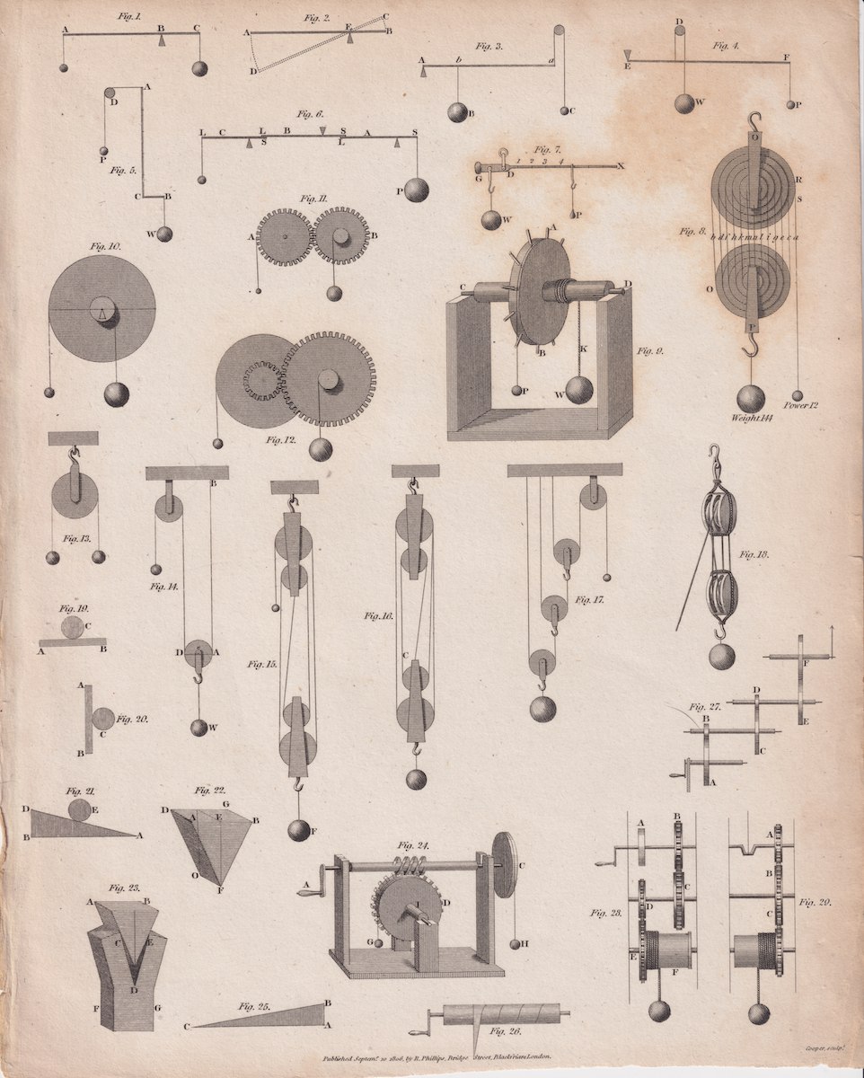 Antique Engraving Print, Mechanics, 1806, credit Antiche Curiosità©