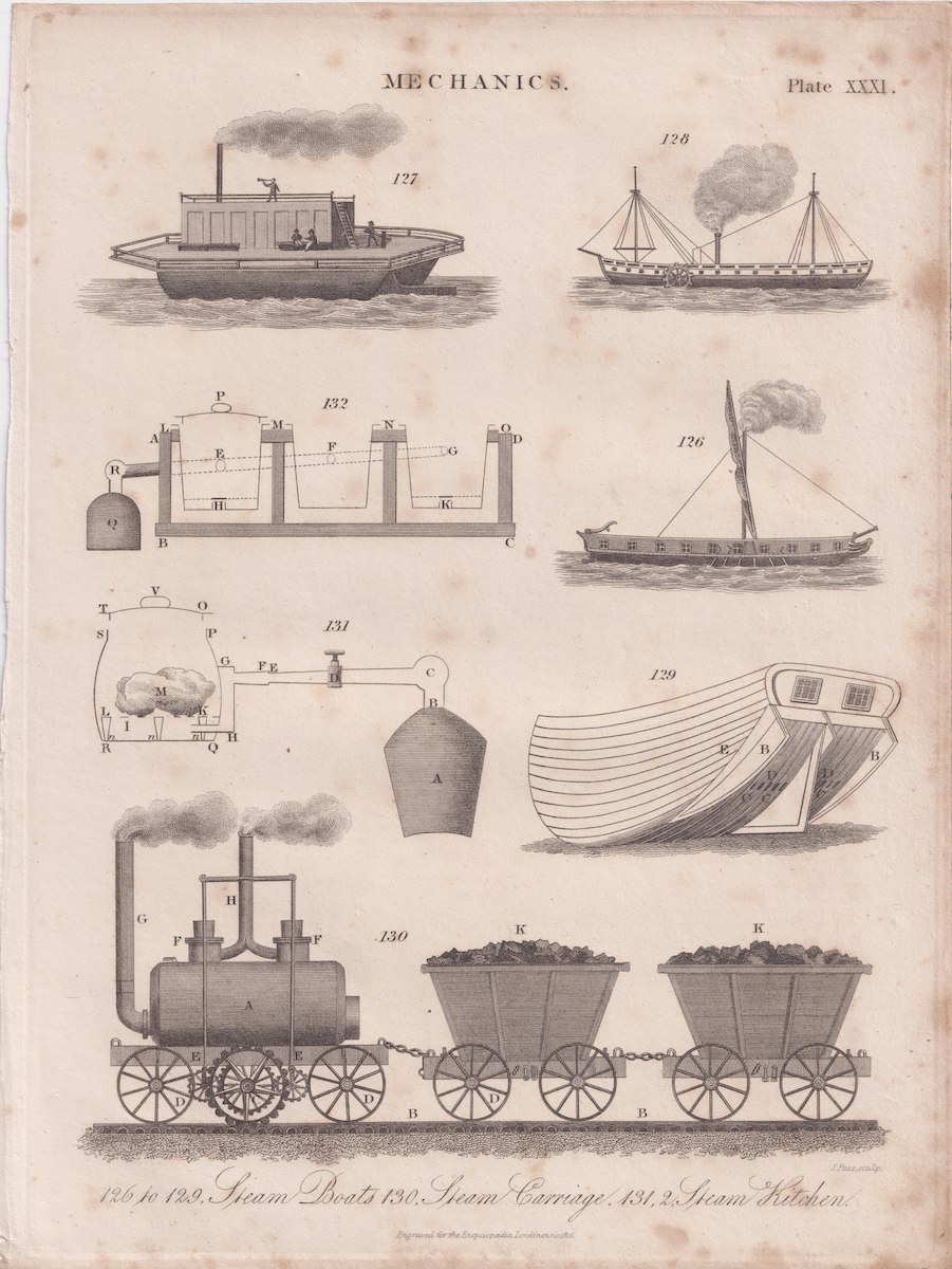Antique Engraving Print, Mechanics, Steams, 1816, credit Antiche Curiosità©