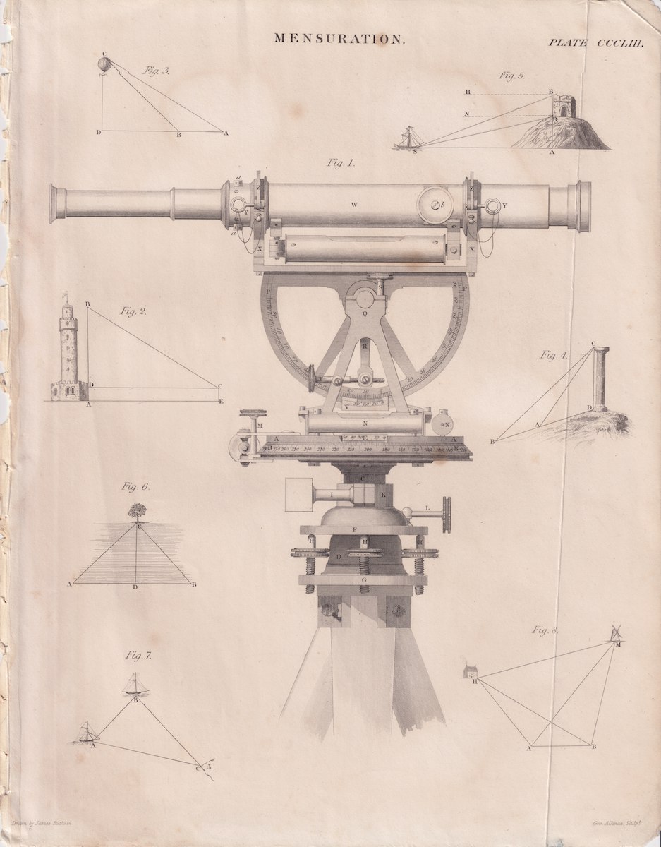 Antique Engraving Print, Mensuration, 1810 ca. credit Antiche Curiosità©