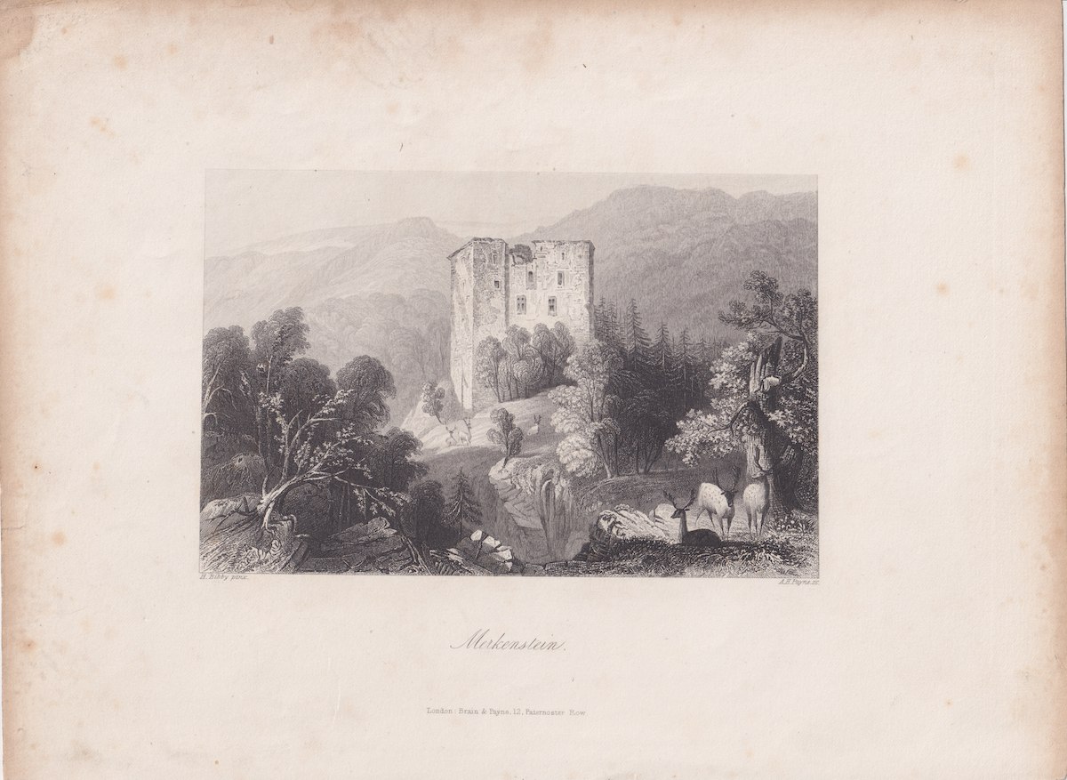 Antique Engraving Print, Merkenstein, 1845, 27.3 x 20.3 cm.