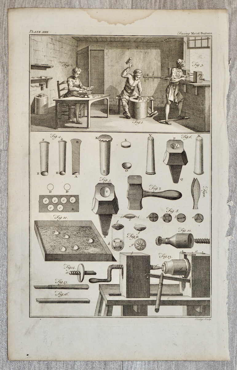 Antique Engraving Print, Metal Buttons, 1860, credit Antiche Curiosità©