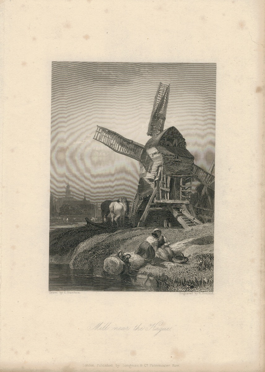 Antique Engraving Print, Mill near the Hague, 1836, 23 x 16 cm.
