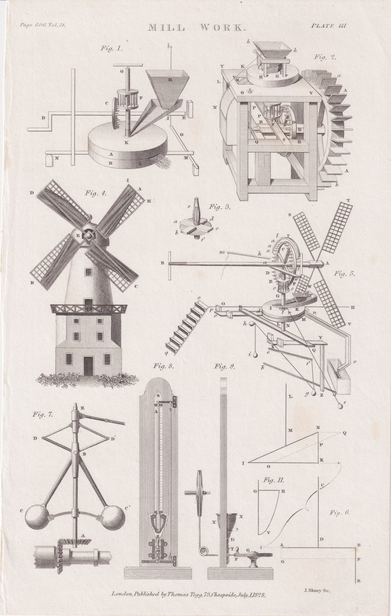 Antique Engraving Print, Mill Work, 1828, credit Antiche Curiosità©