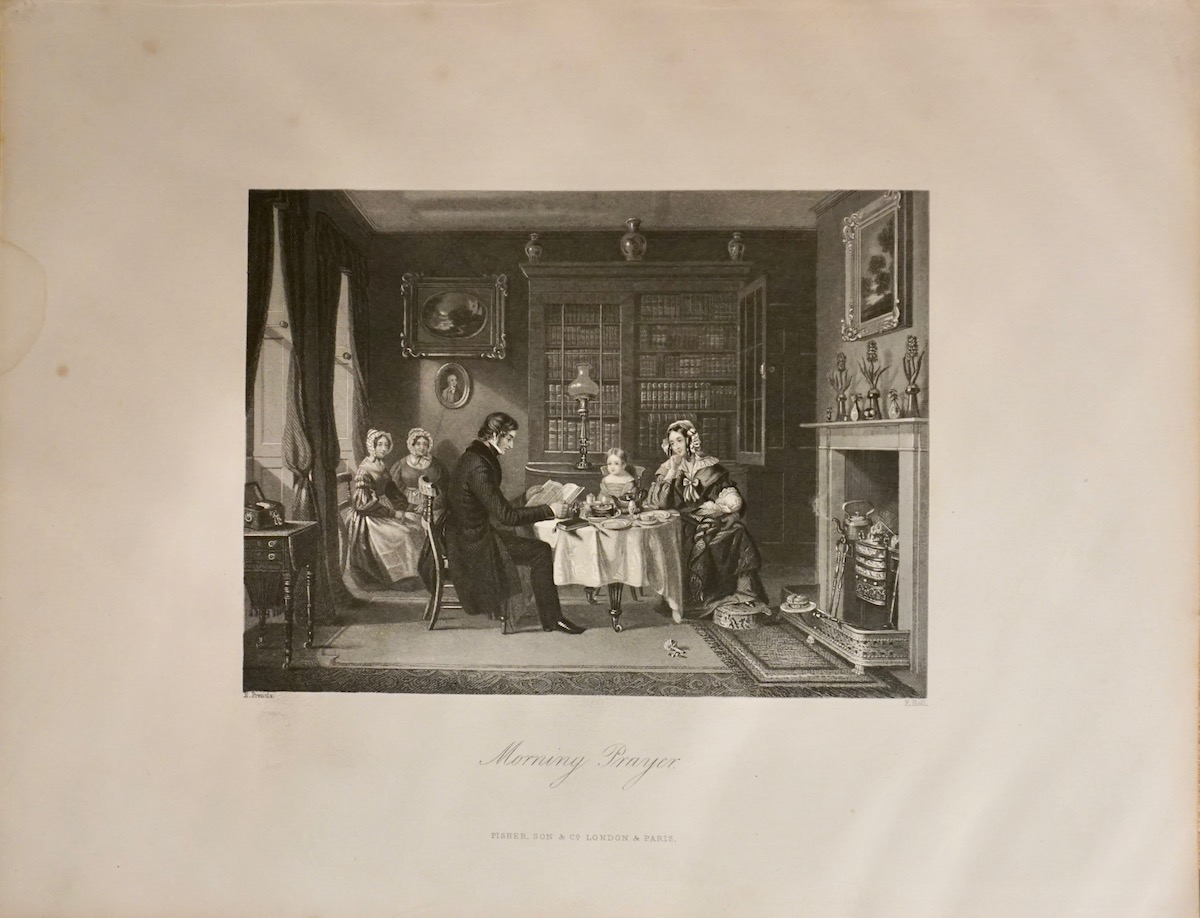 Antique Engraving Print: Morning Prayer, Fisher son & co. London & Paris, 1840, 27 x 22 cm. Very good condition. Rare.
