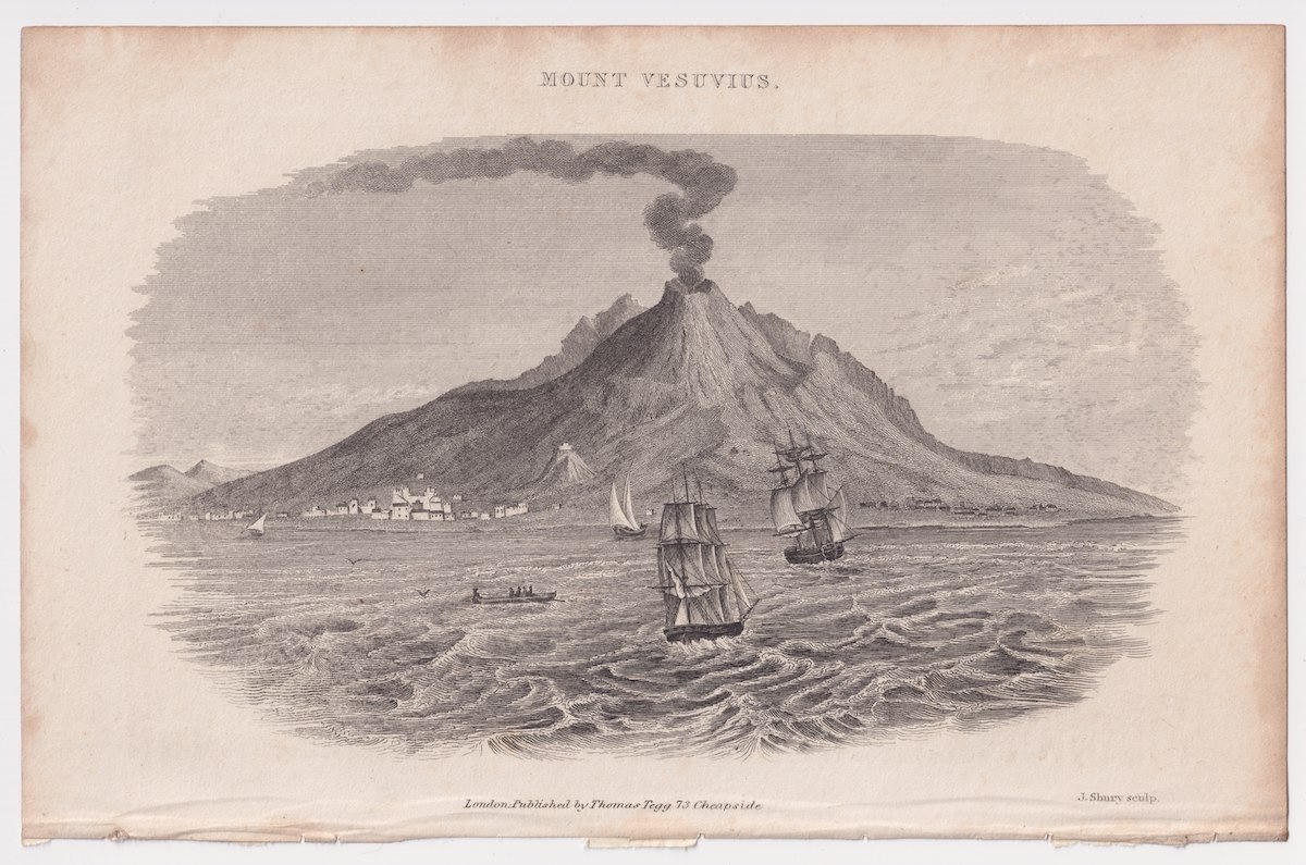 Antique Engraving Print, Mount Vesuvius, 1802, credit Antiche Curiosità©