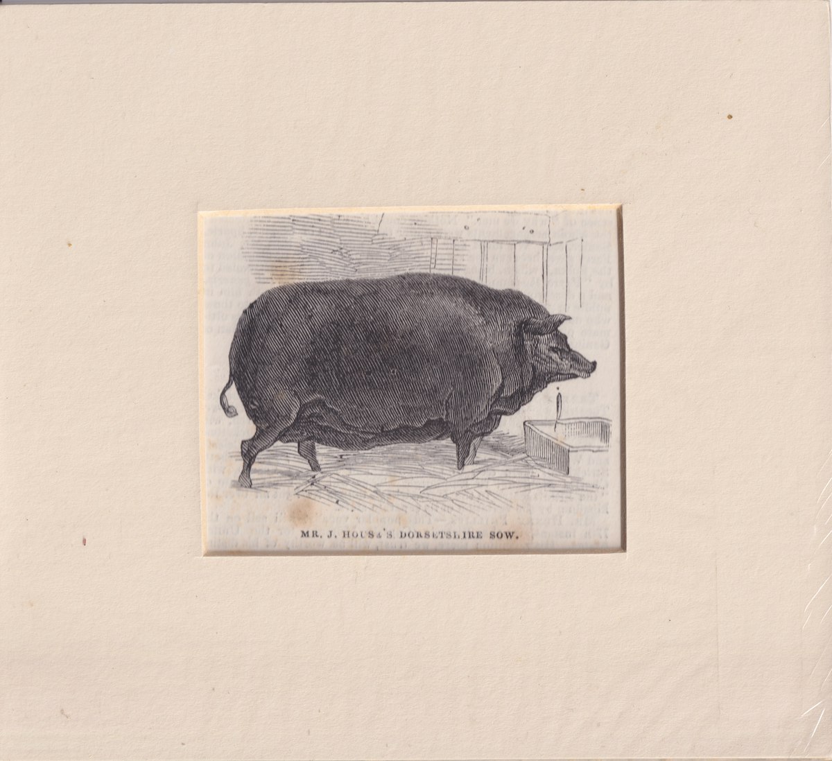 Antique Engraving Print, Mr. J. House’s Dorsetshire Sow, 1870 ca. 16 x 16 cm.