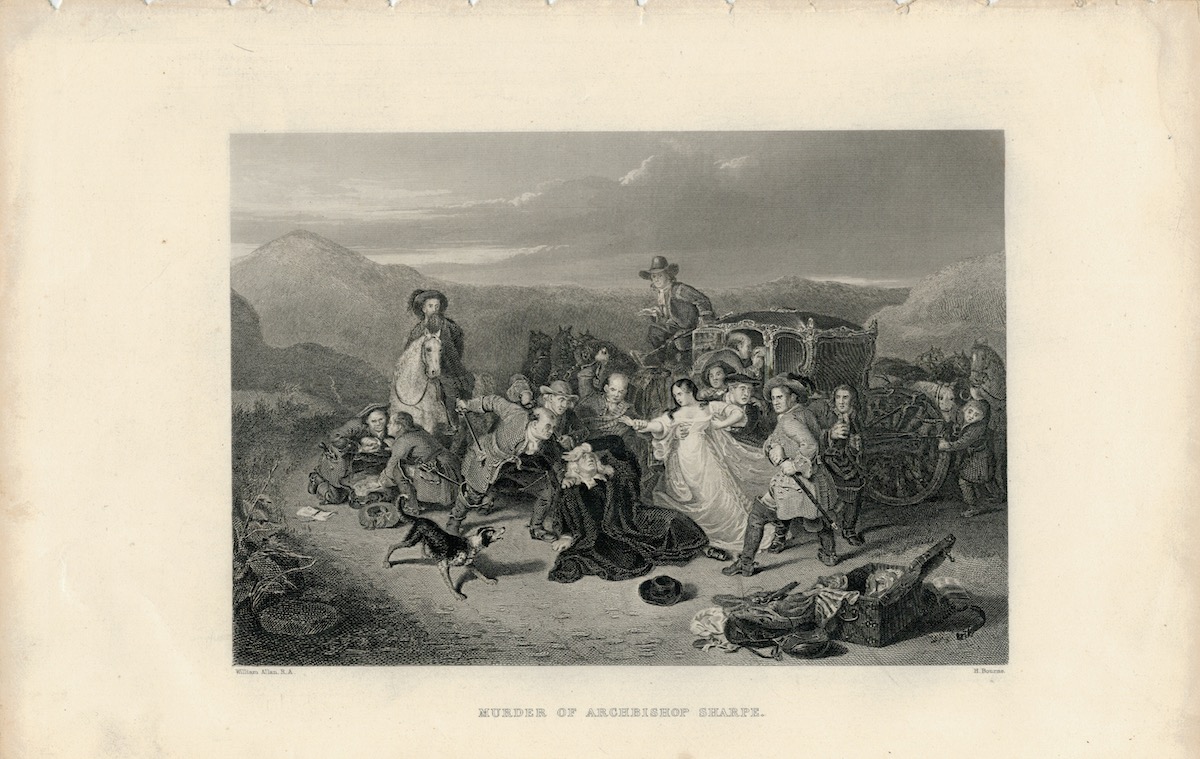 Antique Engraving Print, Murder of Archbishop Sharpe, 1830 ca. 27 x 18 cm. Engraved by h. Bourne.