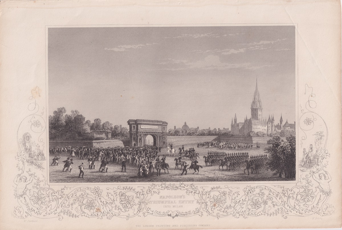 Antique Engraving Print, Napoleone Triumphal Entry into Milan, 1854, credit Antiche Curiosità©