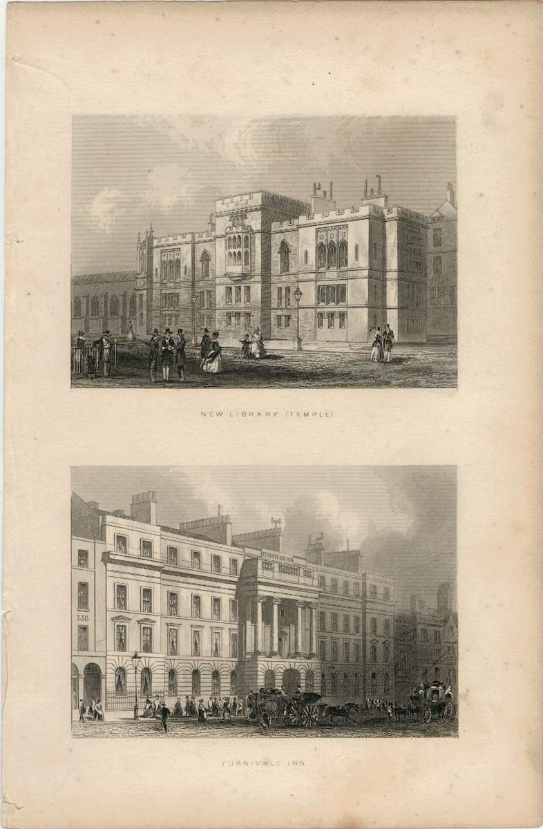 Antique Engraving Print, New Library (Temple), 1853, credit Antiche Curiosità©