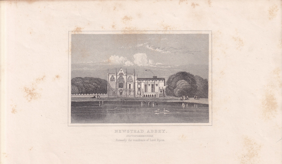 Antique Engraving Print, Newstead Abbey, 1840 ca., 13.5 x 22 cm.