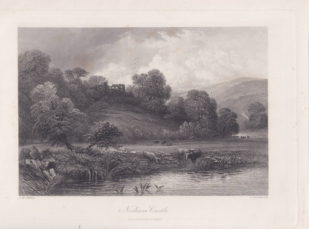 Antique Engraving Print, Norham Castle, 1875, 29.2 x 20.5 cm. Engraved by A. Willmore.