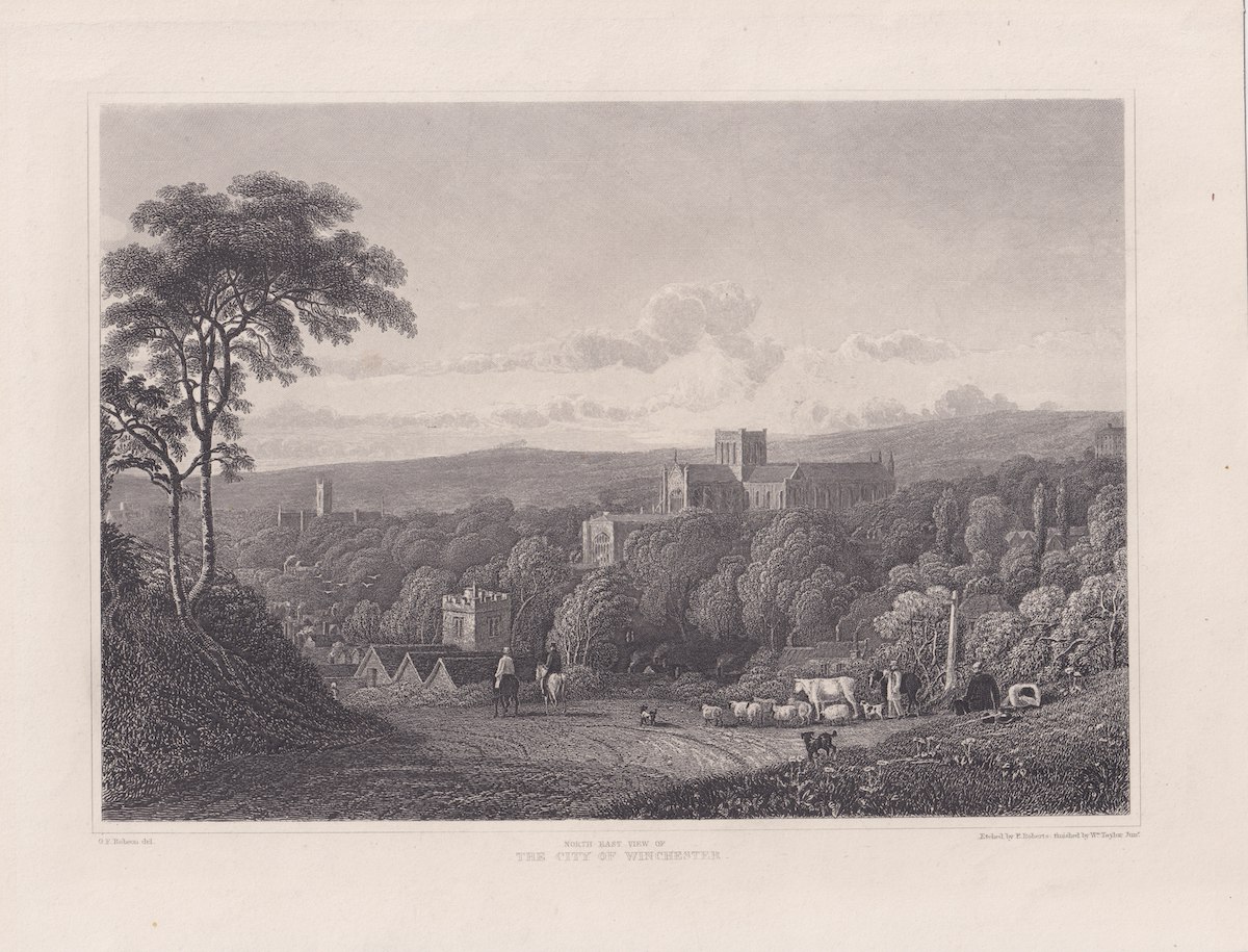 Antique Engraving Print, of Winchester, 1830 ca. 26.5 x 20.4 cm.