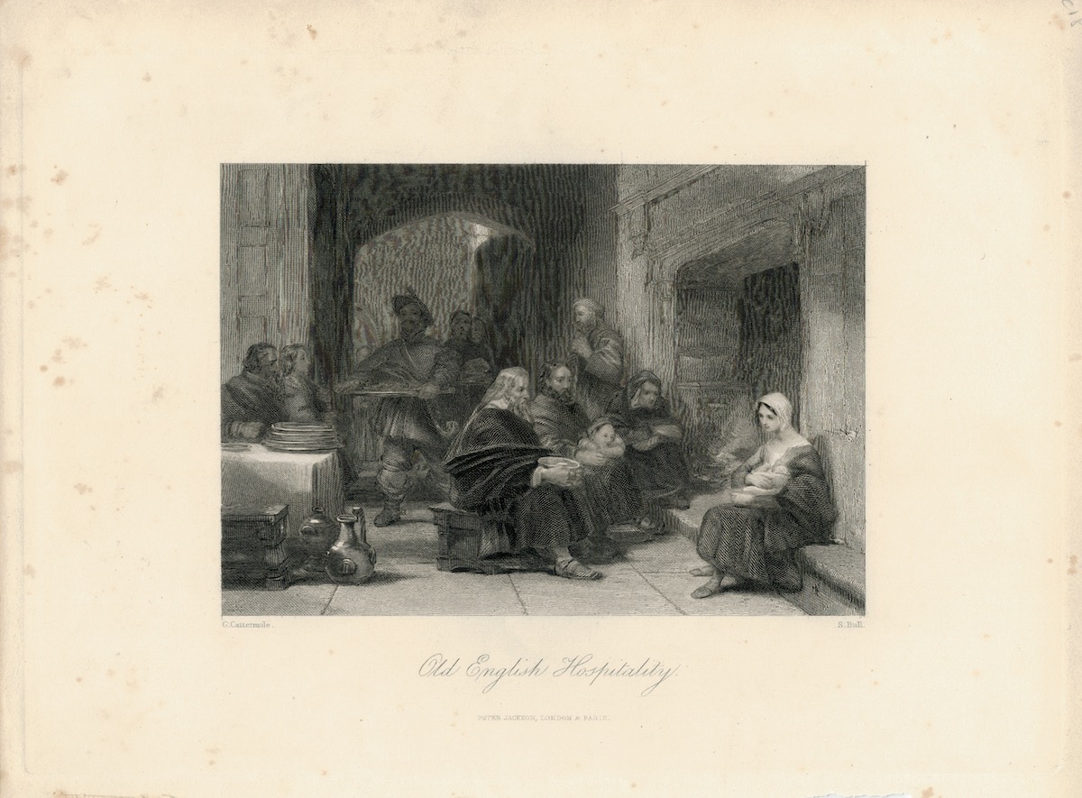 Antique Engraving Print, Old English Hospitality, 1840, 27 x 20 cm. G. Cattermole, S. Bull.